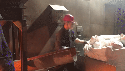 刘强在检查钢丸质量