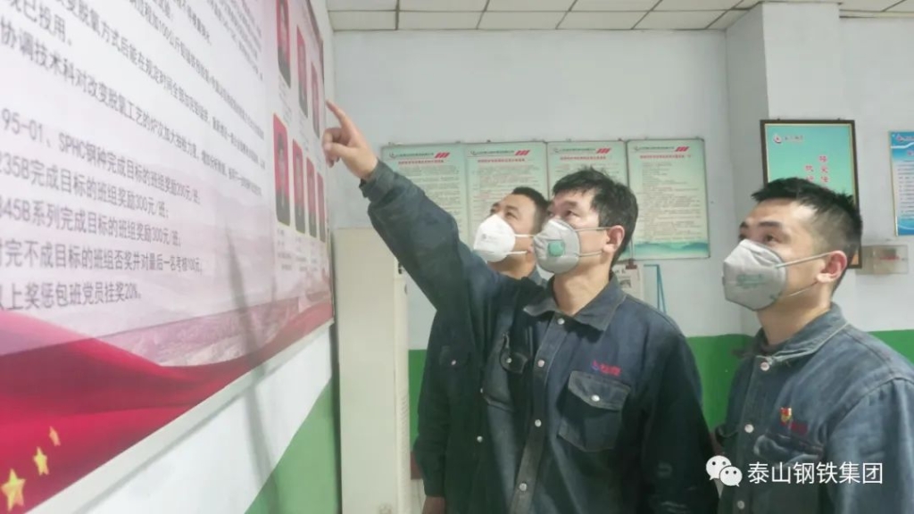 在泰山钢铁不锈钢事业部转炉出钢室内,出钢工正在进行摇炉出钢操作,党员秦呈伟正将脱氧剂通过料管加入钢包内,随着挡渣镖准确推入出钢口位置,钢水顺利出钢。完成出钢后,炉长魏勇在平台西侧的管理看板上认真地写下当班指标完成情况。班后会上, 魏勇乐呵呵地说:“咱们这个班次指标完成的很不错,大家辛苦了。另外我还要告诉大家一个好消息,今天咱们又打破日产单炉单机最高纪录了!”“这可是咱们五月份以来第二次创高产了,这个季度的优秀党员,非我们莫属。”秦呈伟高兴地说道。这是不锈钢事业部党支部党员活动的一个缩影。2020年,该党支部本着“党建给经济效益增砖添瓦”的思路,紧盯“提质放量”的发展目标开展了党员包班、党员积分管理活动,在季度末进行优秀党员、优秀党小组评选,激励广大党员比、学、赶、帮、超,助力不锈钢产、质量的不断提升。活动开展以来,涌现出了秦呈伟、刘强等爱岗敬业、踏实肯干、勇于担当的优秀党员。下面让我们一起分享他们的小故事: