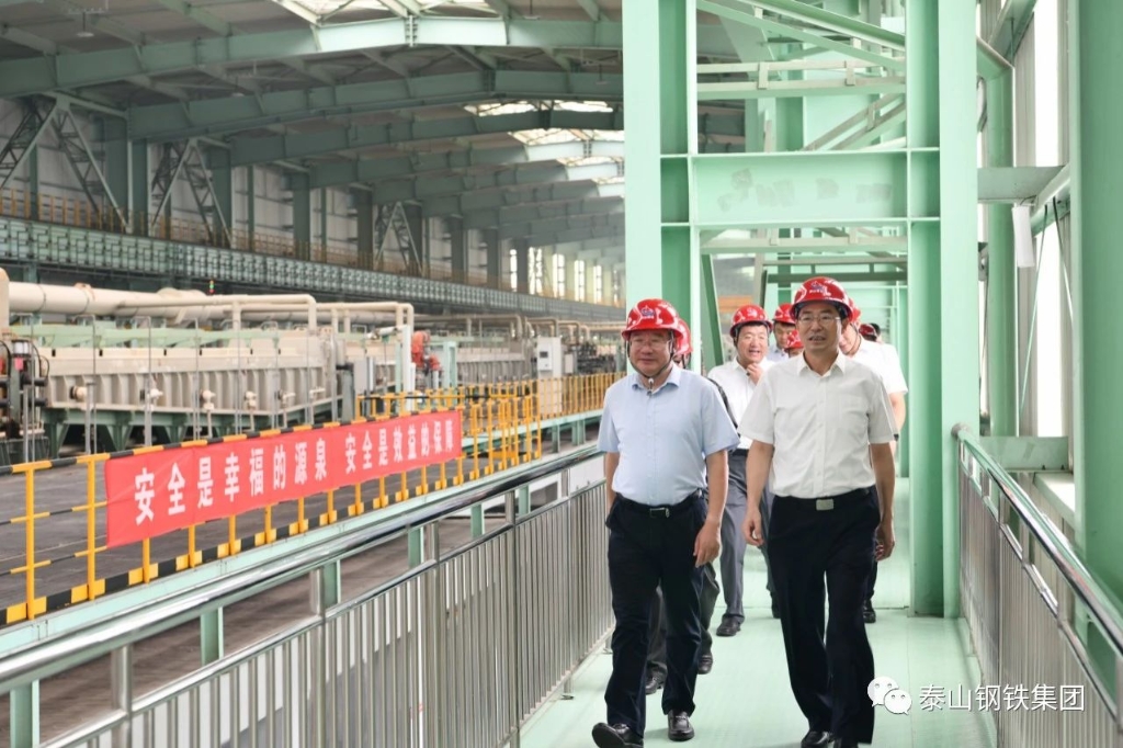 王董事长介绍了集团不锈钢产业发展情况。他说,泰山钢铁坚持“差异化、专业化”发展路子,建成了全国第一条“1+1+3”不锈钢高效智能生产线,填补了省内无高档不锈钢的空白。目前,泰山钢铁已发展成为国内重要的不锈钢生产企业,企业装备水平高、技术自主性强,产品独具特色优势。下一步,泰山钢铁将继续提升不锈钢产业链的高端化、绿色化、智能化水平,打造山东先进制造新名片,争取在新时代新征程上展现更大作为。