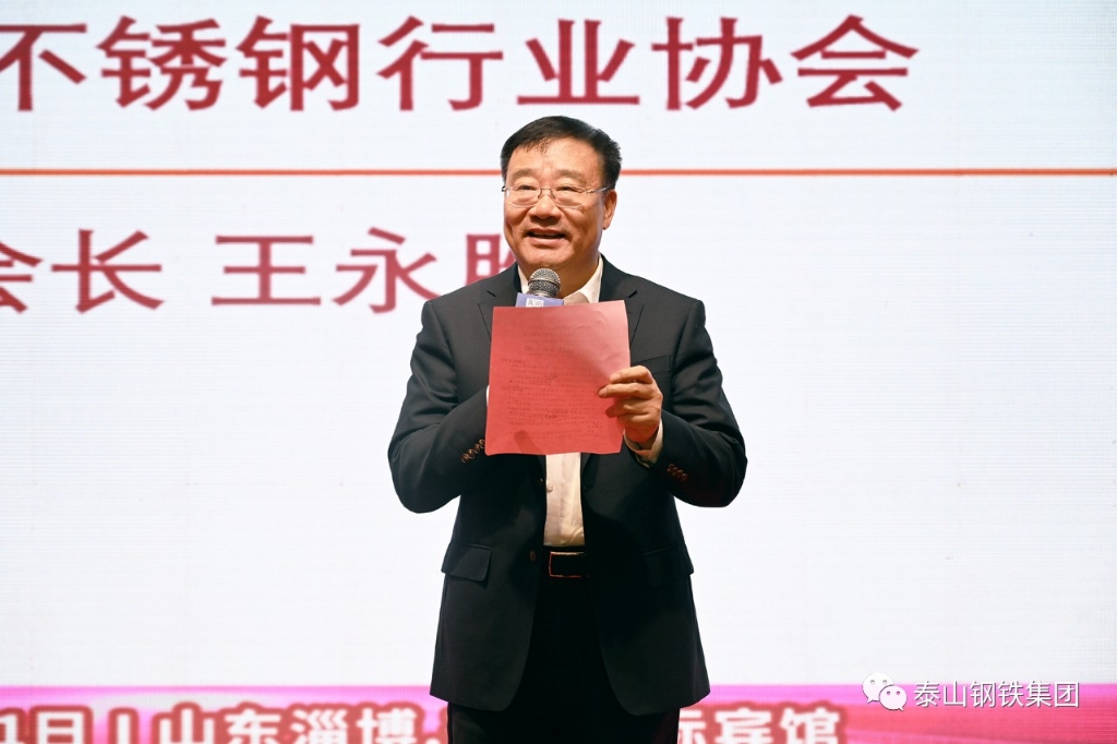 国家发改委宏观经济研究院、中国宏观经济研究院研究员曲凤杰,中国钢铁工业协会不锈钢分会执行会长张志方,中国钢铁工业协会不锈钢分会秘书长刘艳平,山东省消费者协会秘书处副秘书长梁峰,上海钢联电子商务股份有限公司董事长朱军红,淄博市工商联主席、市总商会会长张欣欣,周村区委常委、区政府副区长耿峰等领导参加会议。山东省不锈钢行业协会会长,集团董事长、党委书记王永胜参加会议并致辞。