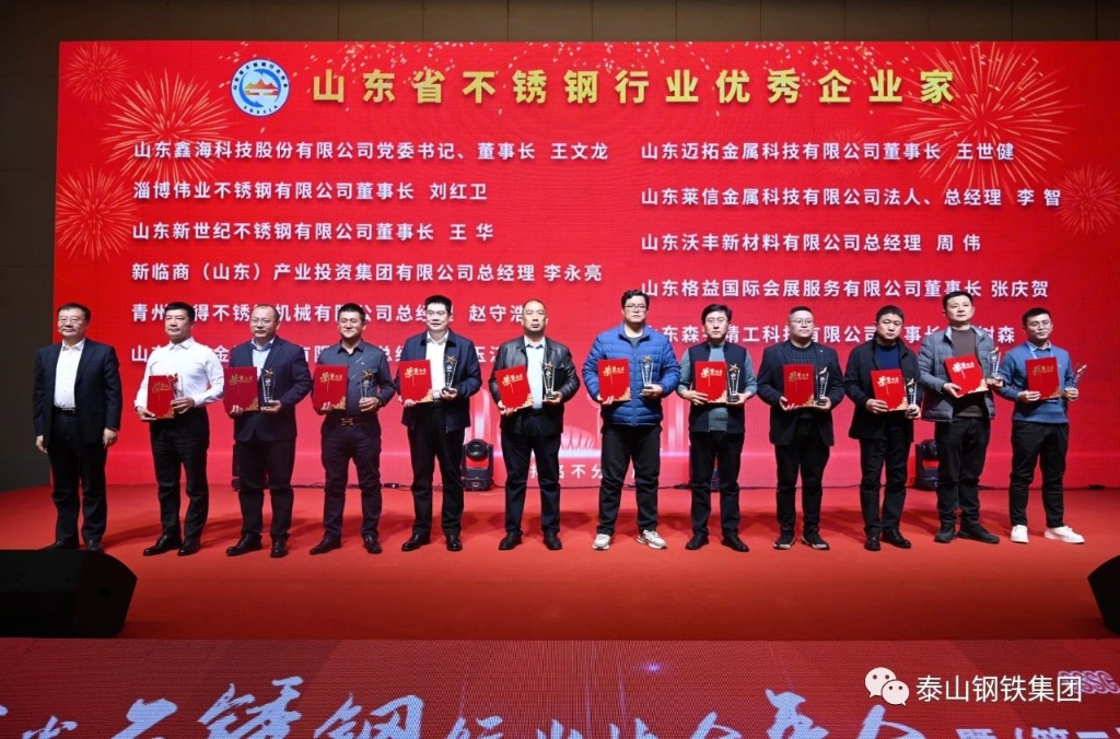 在当晚的答谢晚宴上,山东省不锈钢行业协会表彰了先进单位和个人,王董事长致祝酒辞并为山东省不锈钢行业优秀企业家颁奖。集团泰嘉新材料科技有限公司荣获“山东省不锈钢行业明星企业”“山东省不锈钢行业品牌建设优秀企业”“山东省不锈钢行业最具成长型企业”“山东省不锈钢行业优秀供应商”荣誉,职工陈普荣获“山东省不锈钢行业齐鲁工匠”荣誉,职工亓国强荣获“山东省不锈钢行业销售能手”荣誉。