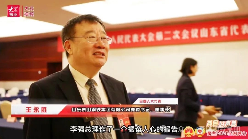 十四届全国人大二次会议开幕会结束后,王董事长接受了山东电视台、《大众日报》新媒体的采访。他表示,要贯彻落实好会议精神,抓好绿色精品钢建设,向着高端、绿色、智能的方向跨越前行,为山东、济南的高质量发展添砖加瓦。