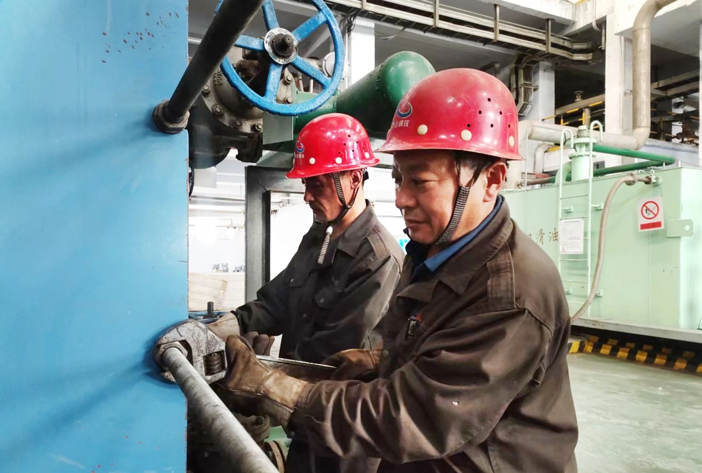 在热电厂机电车间,钳工二班的职工们以扎实的工作作风承担起发电车间、能动车间及煤气站等区域机电设备的日常维护与检修任务,成为保障生产平稳运行的“设备医生”。“消防管道漏水了,快点过来!”一天,班长蔡润来刚回到值班室,急促的电话铃声骤然响起。他迅速带领两名班员抵达现场,但现场的情况却不容乐观:积水已漫至腰部,浑浊的水面下情况不明。“水太浑了,在上边啥也看不见,得到水里摸摸情况。”蔡润来话音刚落,便与两名班员一同纵身入水。三人俯下身子,在水中一寸寸地寻找漏水点。时间一分一秒的过去,他们的双手被泡得发白,可谁也没有退缩。终于,蔡润来激动地喊道:“找到了,快把工具拿下来!”经过数小时的持续奋战,漏水点被成功修补,设备恢复正常运转。“设备维护工作不仅要实干,更要巧干。”老师傅曹际发说。此前,1号高炉煤气余压透平发电装置出口膨胀节因受粉尘、蒸汽冲刷极易磨损。他们经过反复试验,在膨胀节内部加焊不锈钢内衬,隔绝了煤气及杂质的直接侵蚀,显著延长了设备使用寿命。