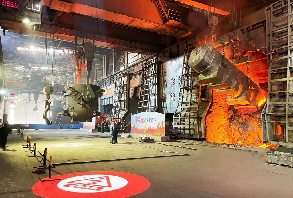 沿着厂房的钢架梯拾级而上,记者见到了泰山钢铁集团热轧部运行车间主跨行车工亓新生。在不足两平方米的操作间里,转炉蒸腾的热浪将空气烤得发烫。亓新生紧攥着控制手柄,目光透过玻璃,牢牢锁定住即将吊运的钢包,即便额头的汗珠顺着安全帽边缘不断滑落,也没有分散半分注意力。
