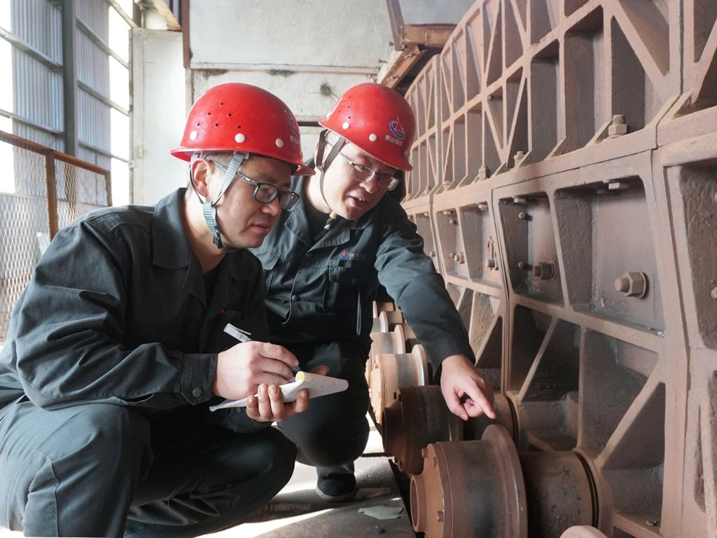 从自己干,到带着团队一起干,转变的是工作模式,不变的是倪西山对烧结生产始终如一的热忱与责任心。在一次夜班生产时,烧结机布料系统突发异常,如果布料不均会严重影响生产进度与产品质量。为此,倪西山立即带领维修团队连夜排查。他们打着手电筒,猫着腰穿梭在设备之间,经过数小时抽丝剥茧般的细致检查,终于锁定布料器传动部件磨损的症结。他迅速制定维修方案,亲自把控每个维修环节,直至设备恢复正常运转,为生产顺行抢回宝贵时间。